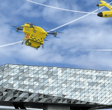 The next step will be to validate the concepts in real-life demonstrations in several countries, including Belgium, Germany and the Netherlands. The trials envisage scenarios including transfers of medical equipment and tissue samples between hospitals and labs, delivery of a defibrillator to treat a cardiac patient outside a hospital, and transport of a physician to an emergency site by passenger drone.